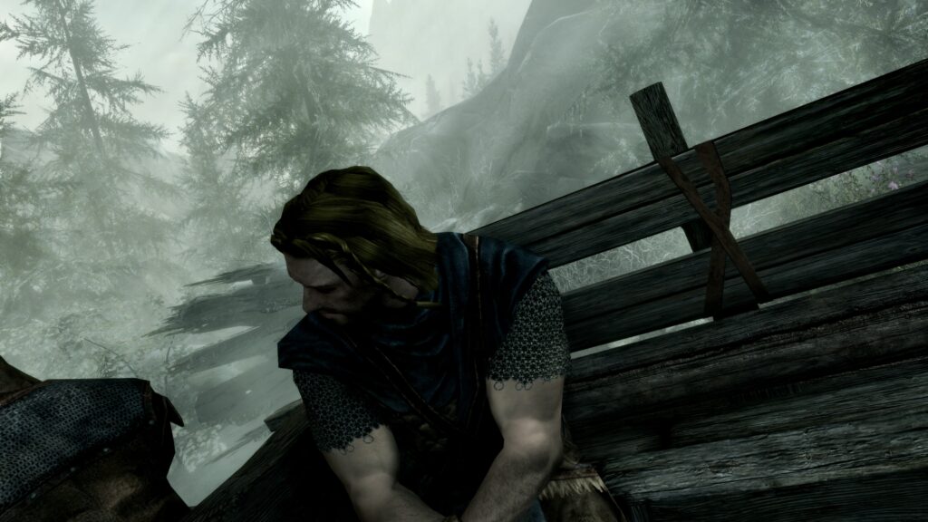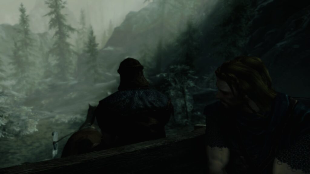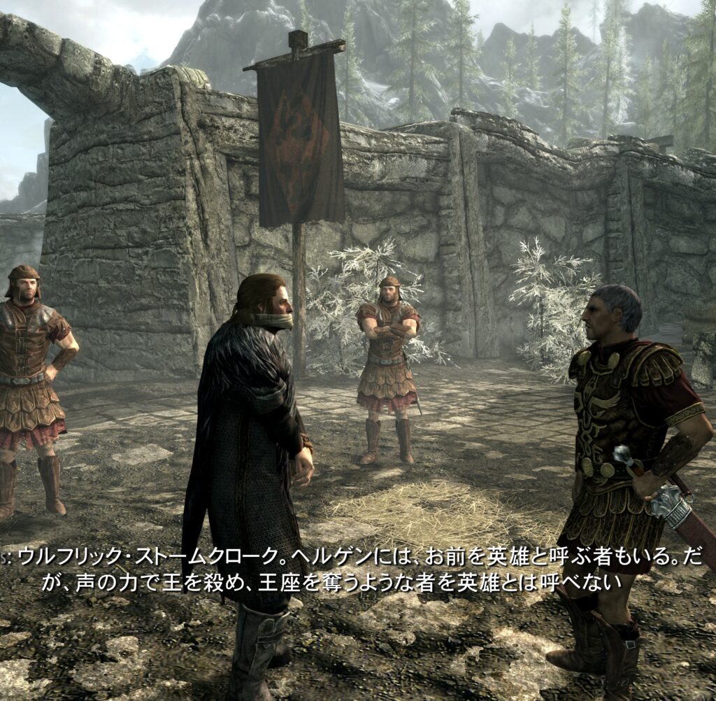 手を縛られてるおじさんの光景を見慣れることなんてあってはならないんですけど、多くの方はもうこの光景でスカイリム始まったなぁと思うわけですね。