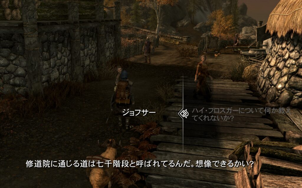 そしてどこからともなく私を呼ぶ声が聞こえてきて、ドラゴンボーンならなんか山にいるすごいおじいちゃんが呼んでると思うから話聞いてこいと言われたので、まぁこれもね、2回目なんで余裕でいってきてやりますよ。